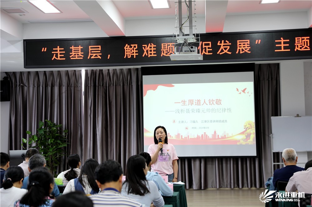 參觀后,在四樓會議室進行了黨紀學習教育,學習了習近平總書記在新時代推動西部大開發座談會上的重要講話 ,《中國共產黨紀律處分條例》,觀看了警示教育片。隨后,區關工委思想道德教育團成員、白沙鎮二級巡視員刁福久以“一生厚道人欽佩-淺析聶榮臻元帥的紀律性”為題,為全體黨員干部上了一堂生動的紀律黨課。他通過生動的講述,配以大量史料佐證,真實地再現了聶榮臻元帥在法國勤工儉學、中國革命實踐、國防科技發展等不同時期如何踐行初心和使命,嚴守黨的紀律,遵守黨的規定,清正廉潔,嚴格家風家訓,為黨和人民的事業奮斗一生的傳奇經歷。宣講中,刁福久飽含深情,黨員同志們凝神靜聽,現場不時爆發出熱烈掌聲。