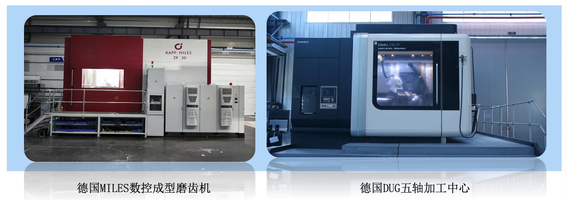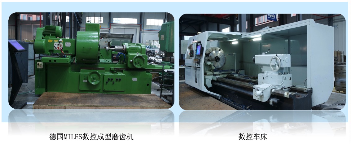 公司擁有德國DMG五軸加工中心、意大利PAMA鏜銑加工中心、德國NILES數控成型磨齒機等先進設備、德國申克動平衡機等國際先進加工設備,擁有各類專業加工與檢測設備,可加工制造直徑達4米、模數不限、精度達DIN-3級、齒面硬度達HRC58-62的各類整體式齒輪件、無退刀槽的人字齒以及高精度箱體,同時掌握世界領先的螺旋錐齒輪單配加工技術。